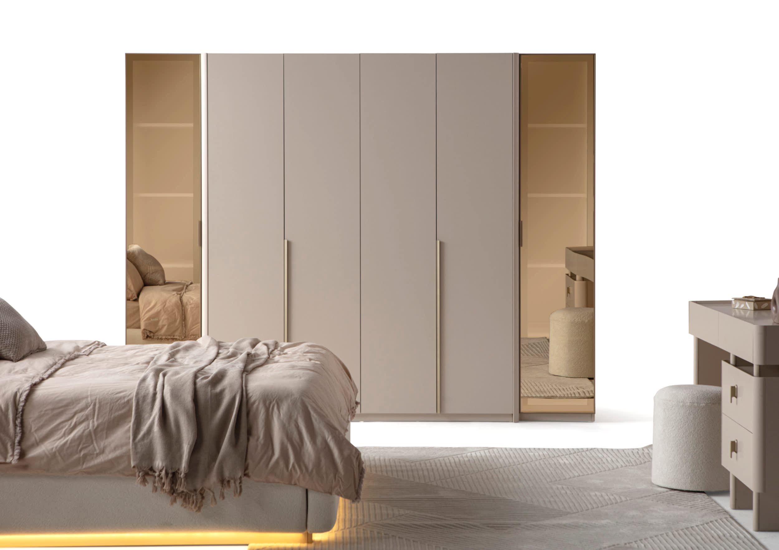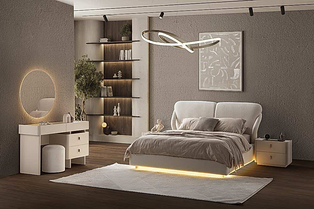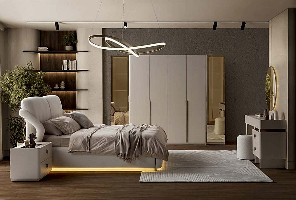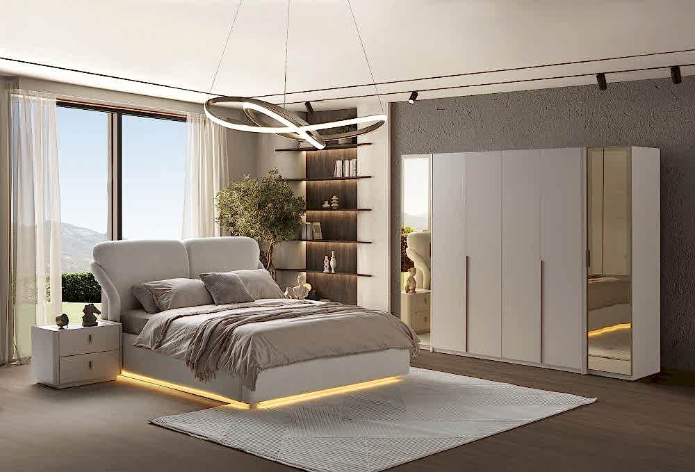 Yatak Odası Takımı: Dolap – Bazalı Karyola ve Başlık – Aynalı Şifonyer ve Komodinler