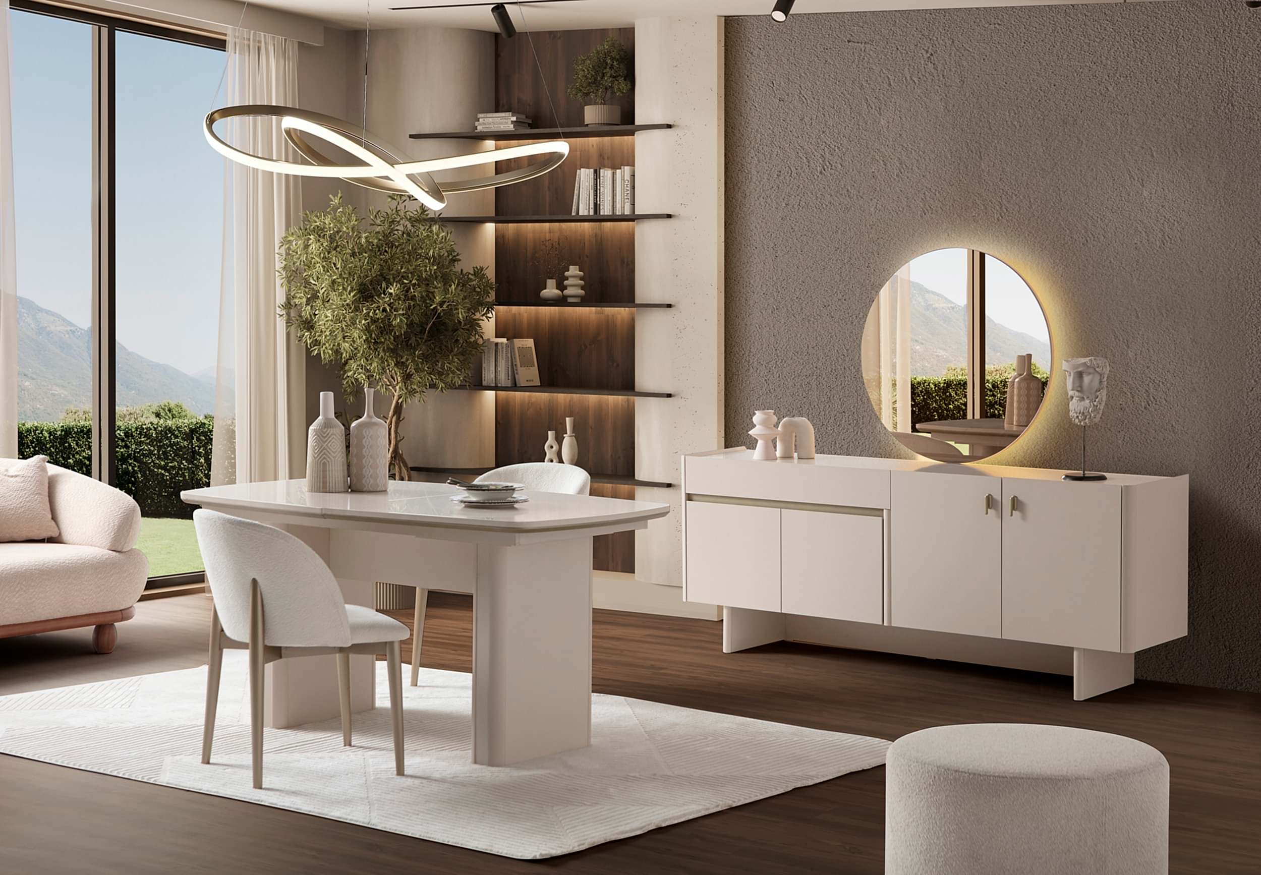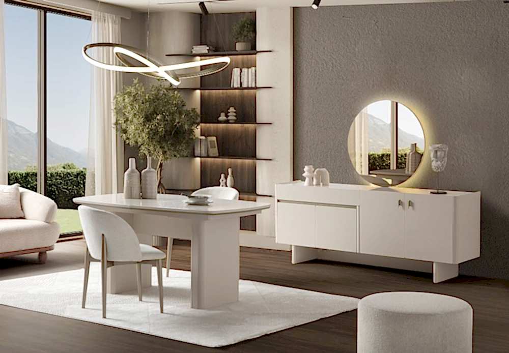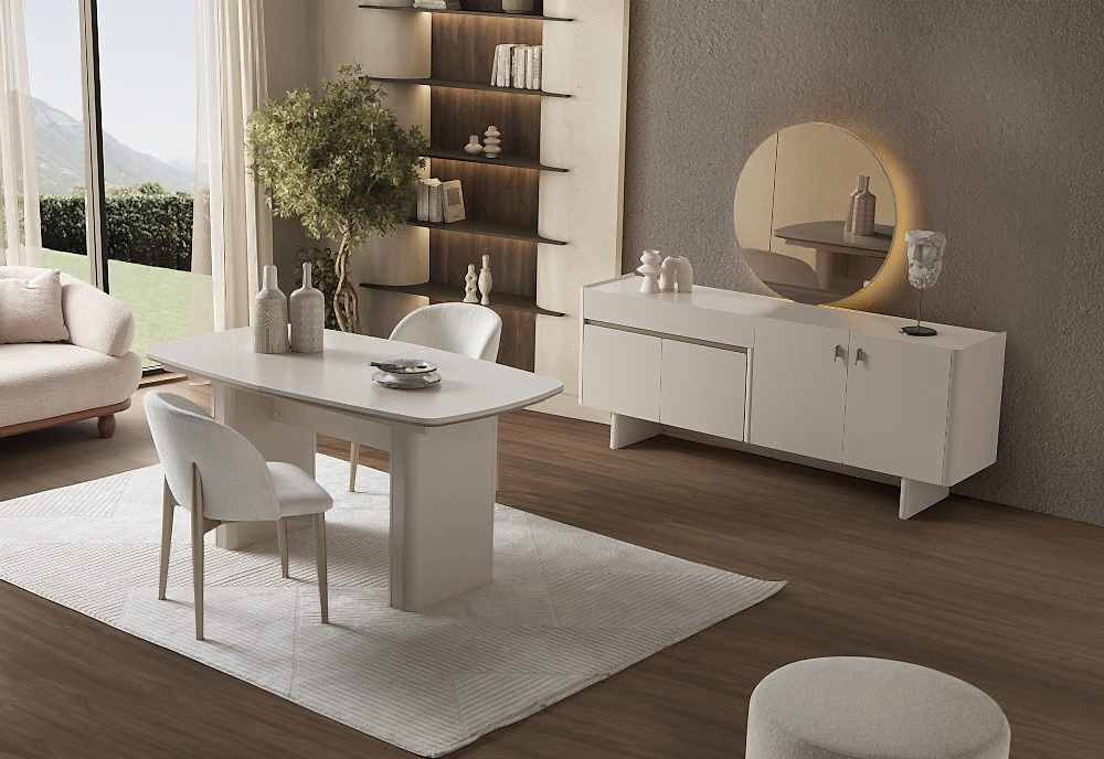 Yemek Odası Takımı: Aynalı Konsol – Masa ve 6 Sandalye