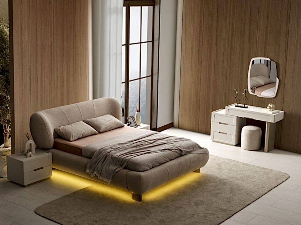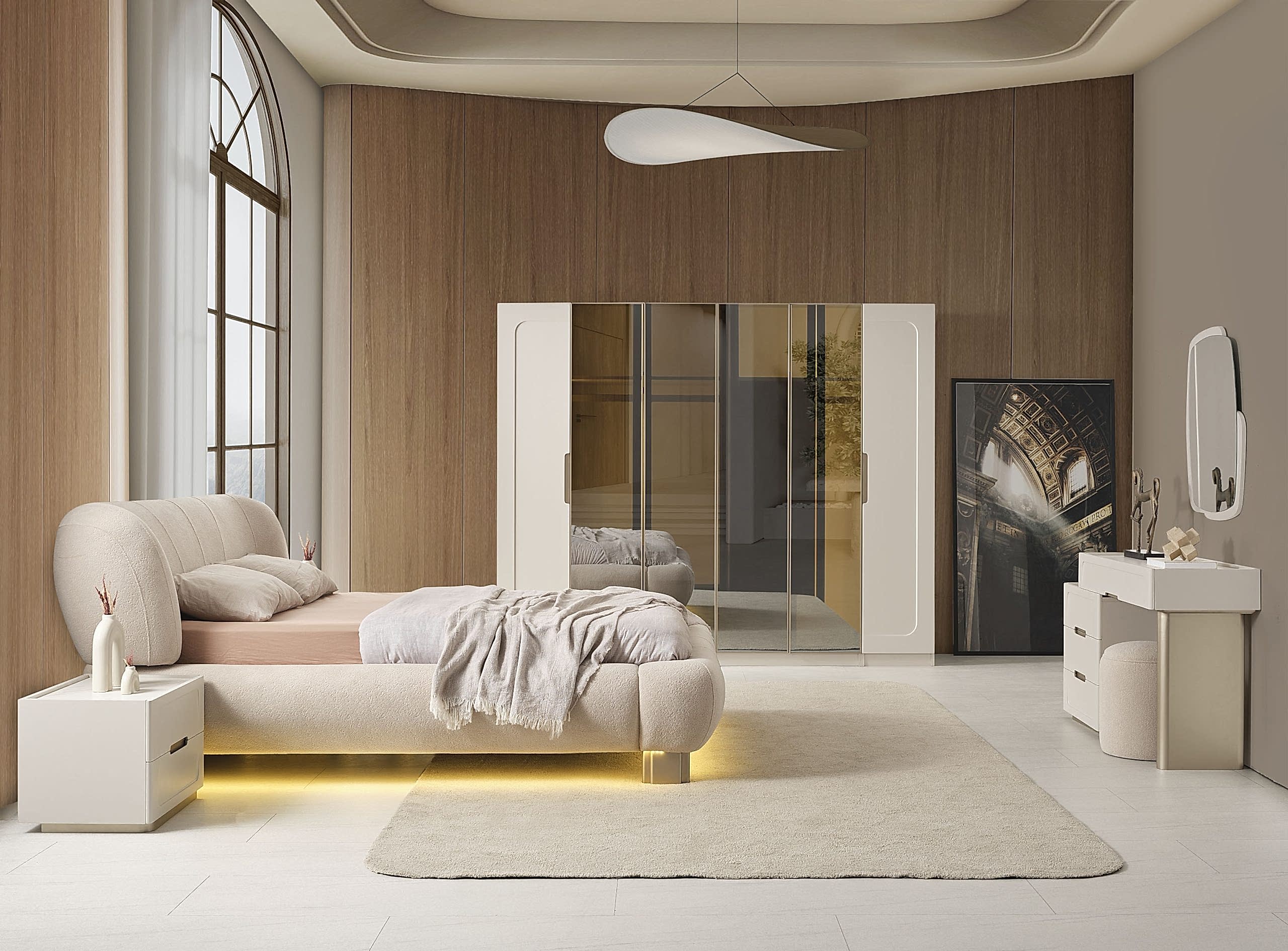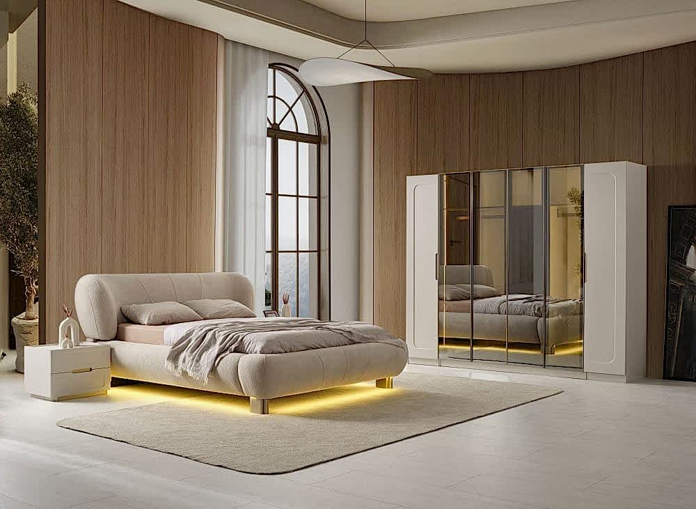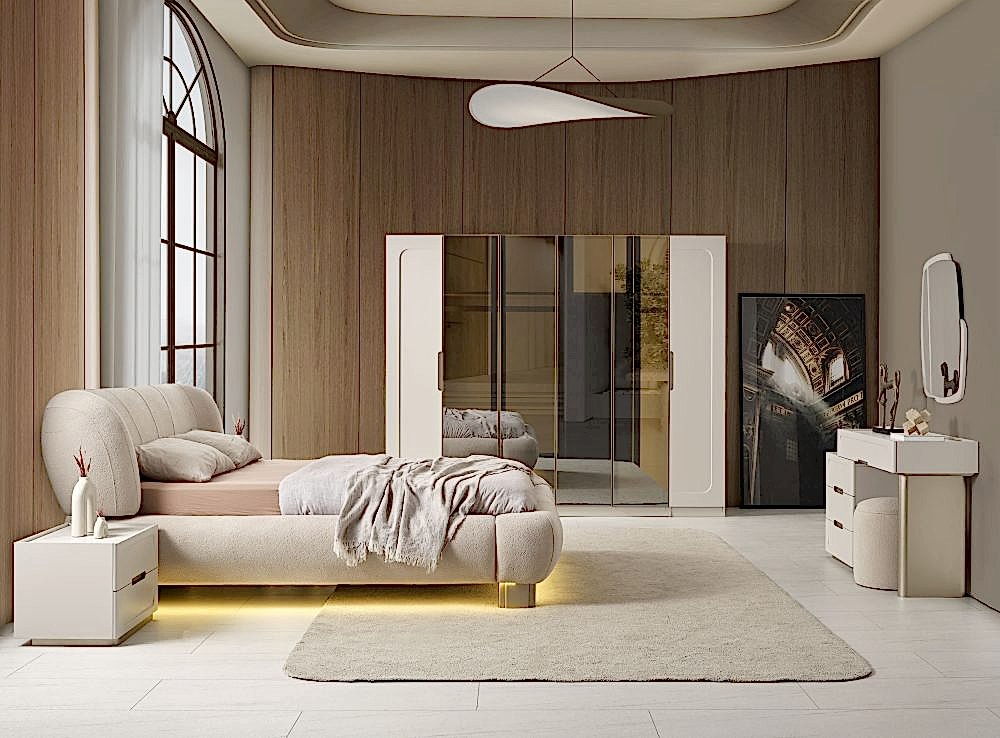 Yatak Odası Takımı: Dolap – Bazalı Karyola ve Başlık – Aynalı Şifonyer ve Komodinler
