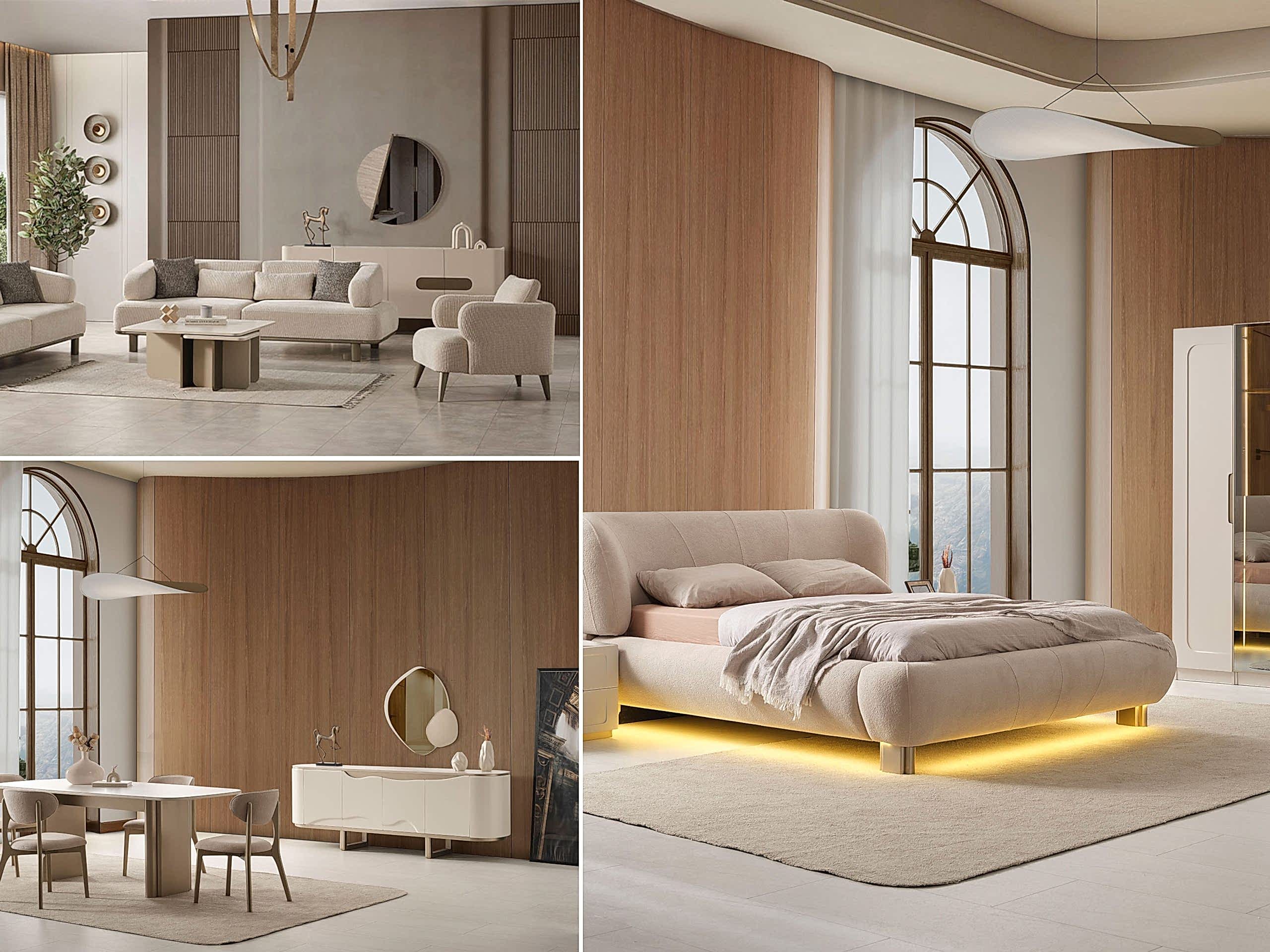 Aspera Düğün Paketi, yeni evlenen ve evini yenileyen çiftler için avantajlı içeriğiyle favori seçimlerinden biri haline geliyor. İnegöl Mobilya üretimi olan düğün paketi içeriği yatak odası takımı, yemek odası takımı ve koltuk takımından oluşmaktadır.