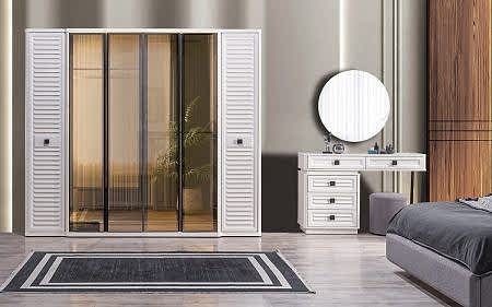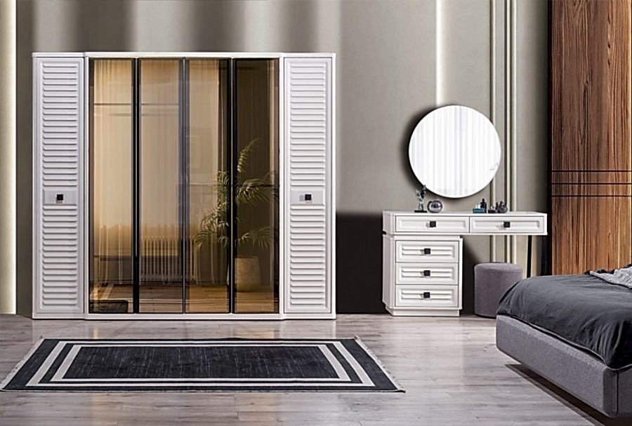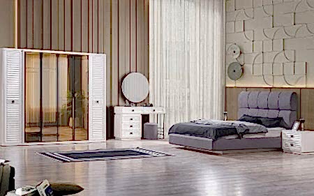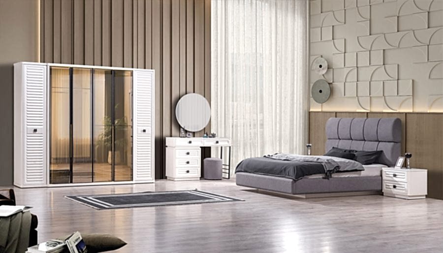 Yatak Odası Takımı: Dolap – Bazalı Karyola ve Başlık – Aynalı Şifonyer ve Komodinler