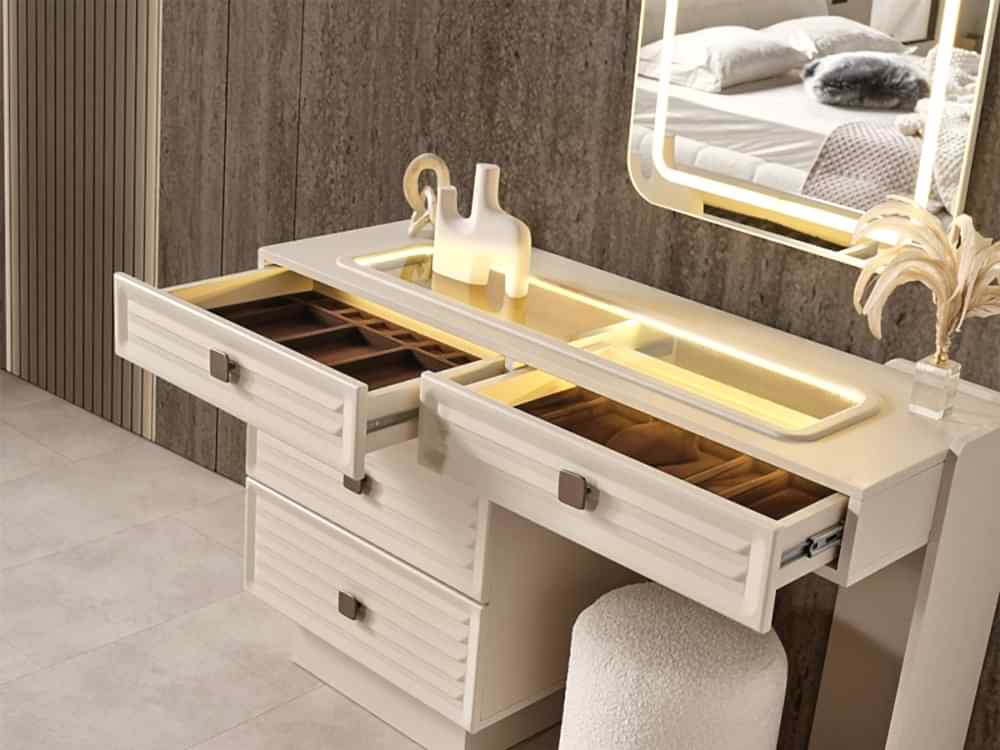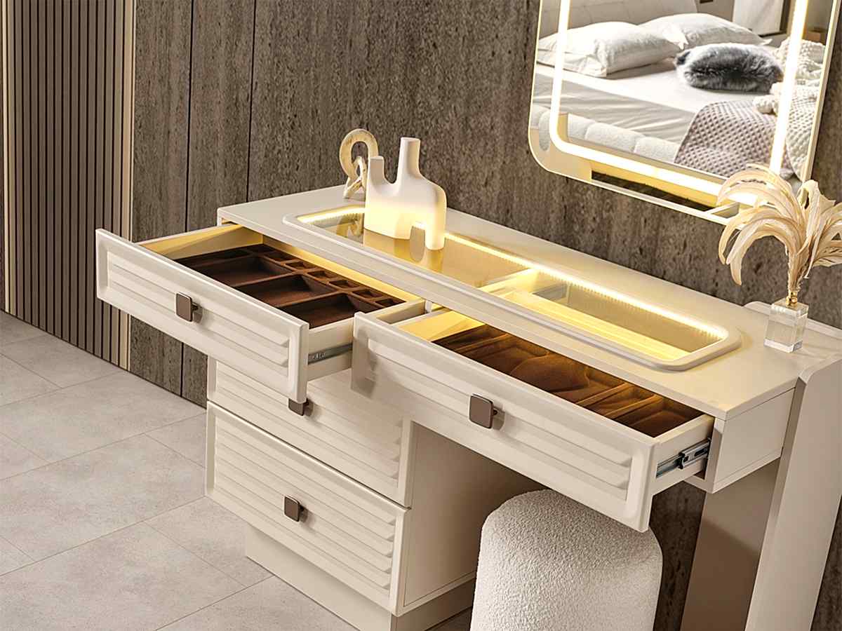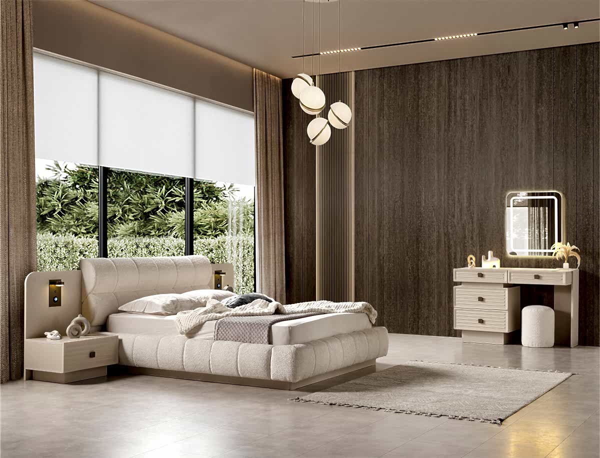 Esila Yatak Odası, İnegöl Mobilya kalitesinin ve işçiliğini bir araya getirerek yatak odalarınıza tarzınızı yansıtıyor. İnegöl’ün mobilya üretim kalitesinden gelen bu yatak odası takımı dolap, şifonyer, ayna, komodin ve karyoladan oluşturmaktadır.