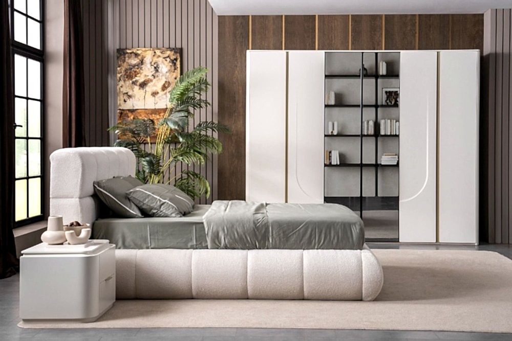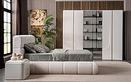 Yatak Odası Takımı: Dolap – Bazalı Karyola ve Başlık – Aynalı Şifonyer ve Komodinler