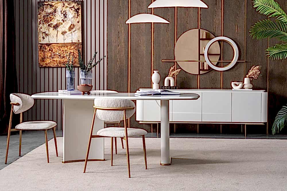Yemek Odası Takımı: Aynalı Konsol – Masa ve 6 Sandalye