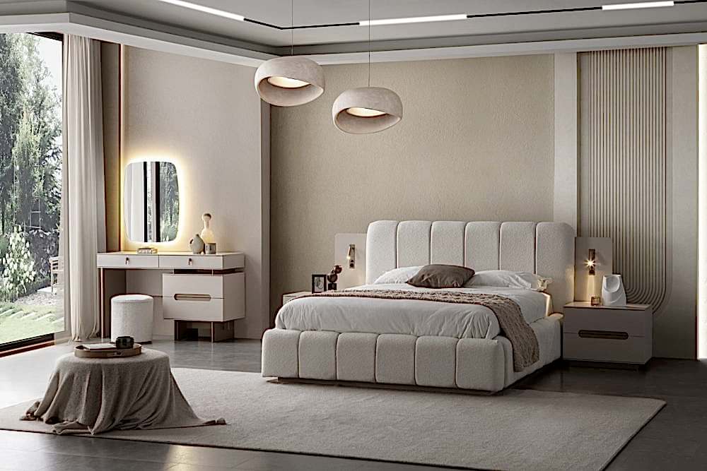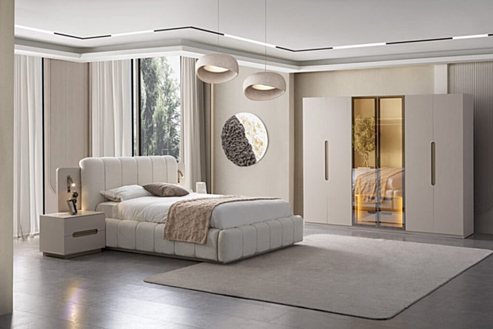 Yatak Odası Takımı: Dolap – Bazalı Karyola ve Başlık – Aynalı Şifonyer ve Komodinler