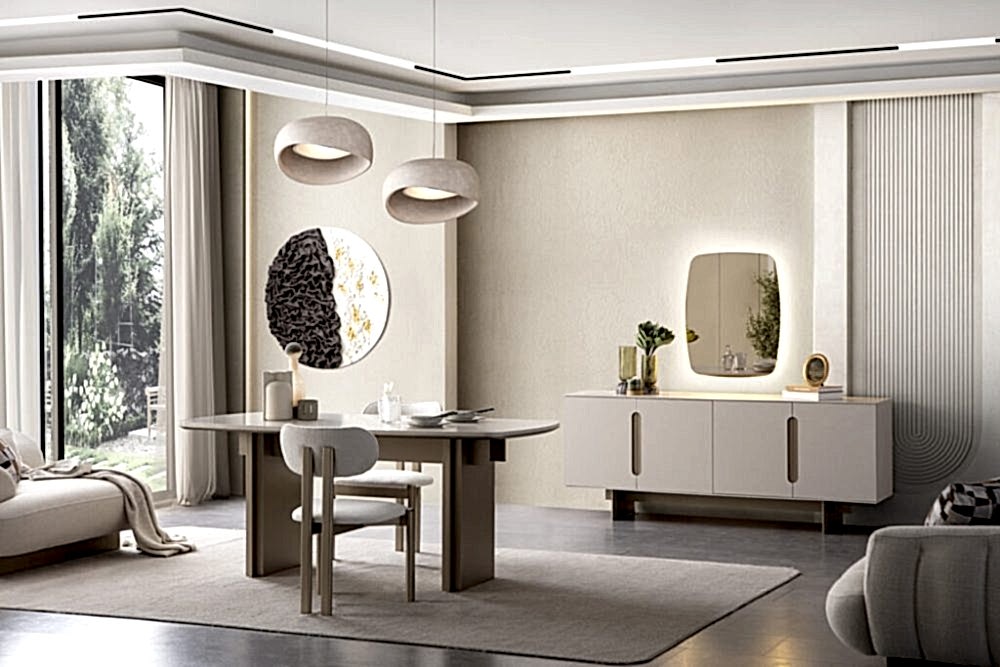 Yemek Odası Takımı: Aynalı Konsol – Masa ve 6 Sandalye