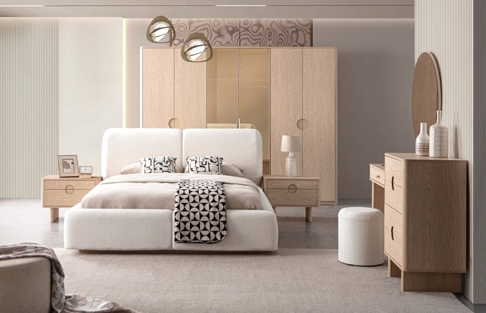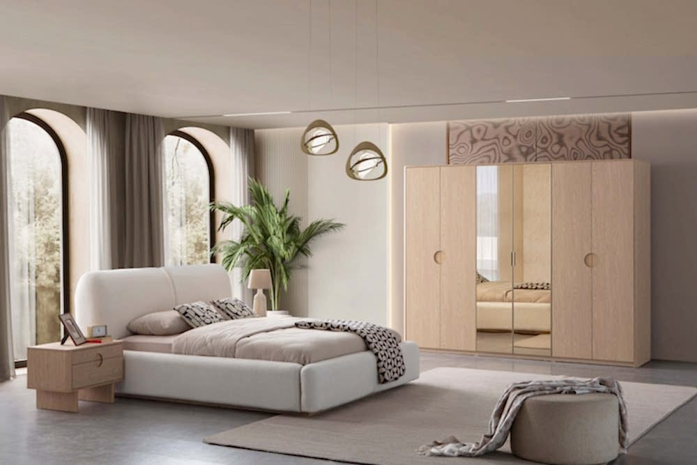Yatak Odası Takımı: Dolap – Bazalı Karyola ve Başlık – Aynalı Şifonyer ve Komodinler