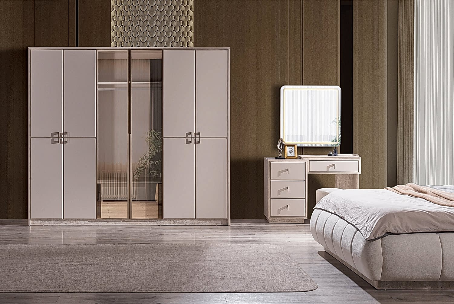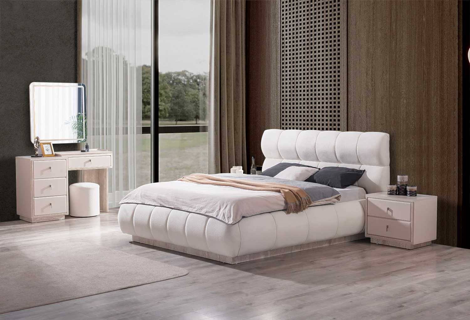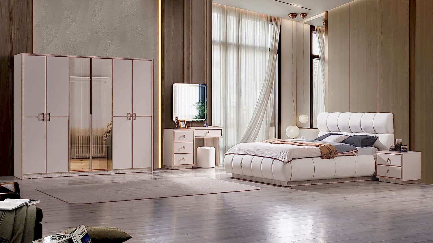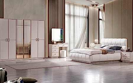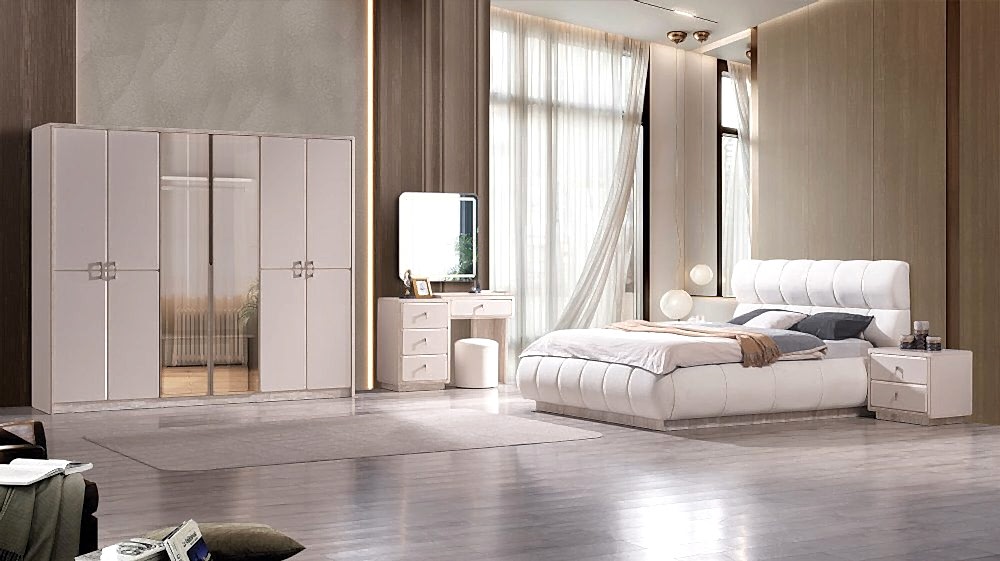 Yatak Odası Takımı: Dolap – Bazalı Karyola ve Başlık – Aynalı Şifonyer ve Komodinler