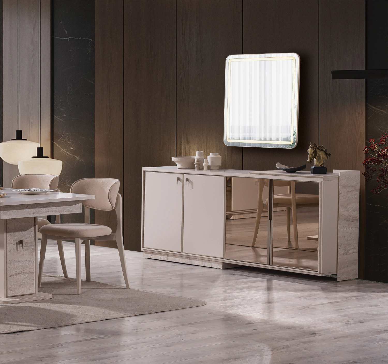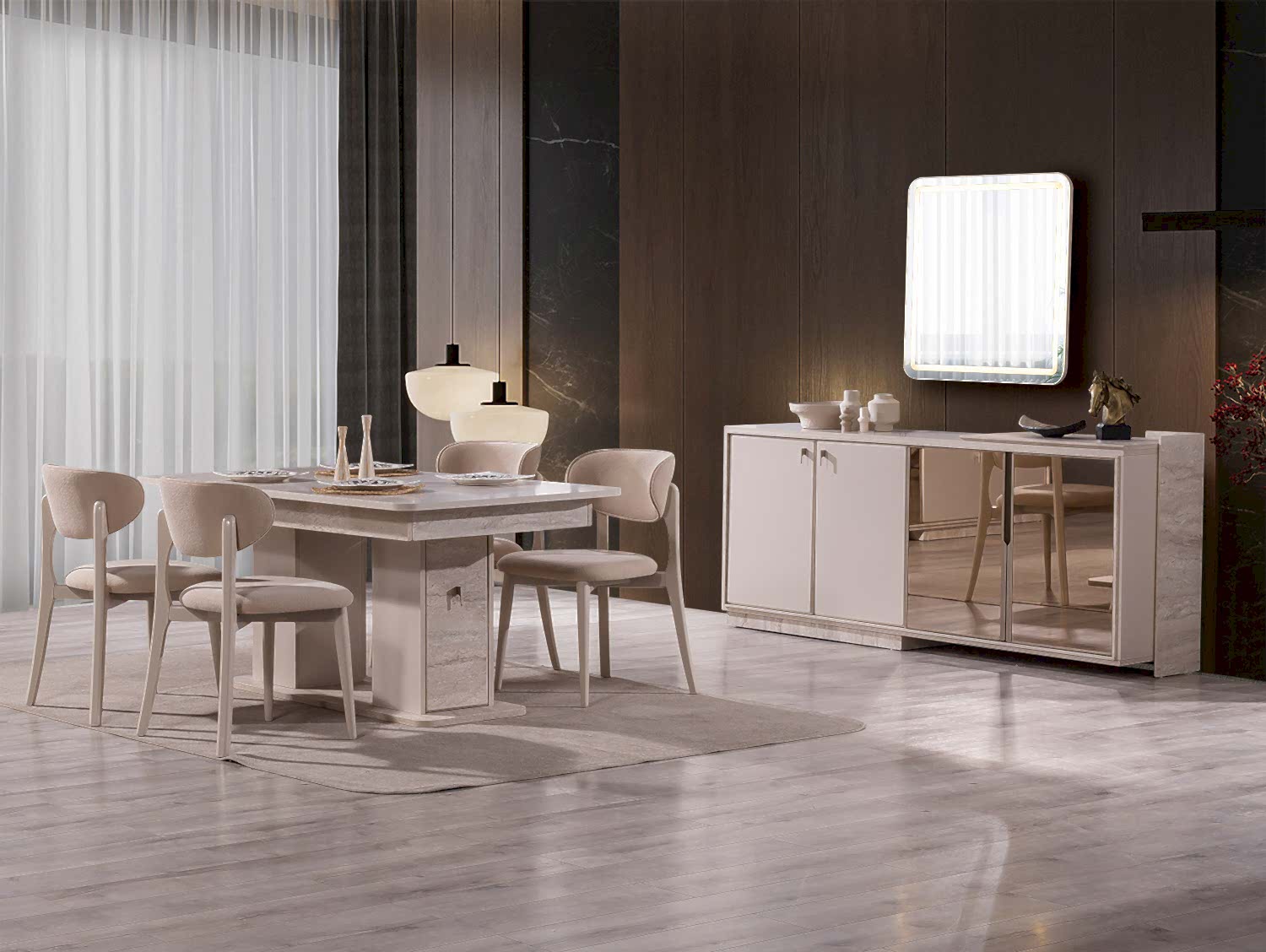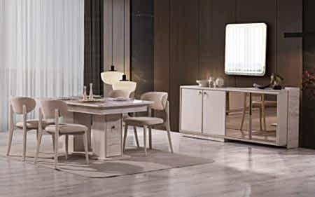 Yemek Odası Takımı: Aynalı Konsol – Masa ve 6 Sandalye