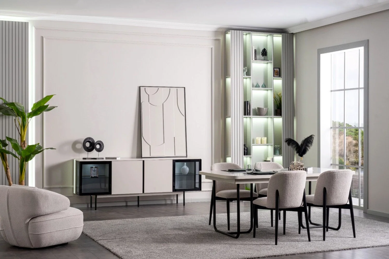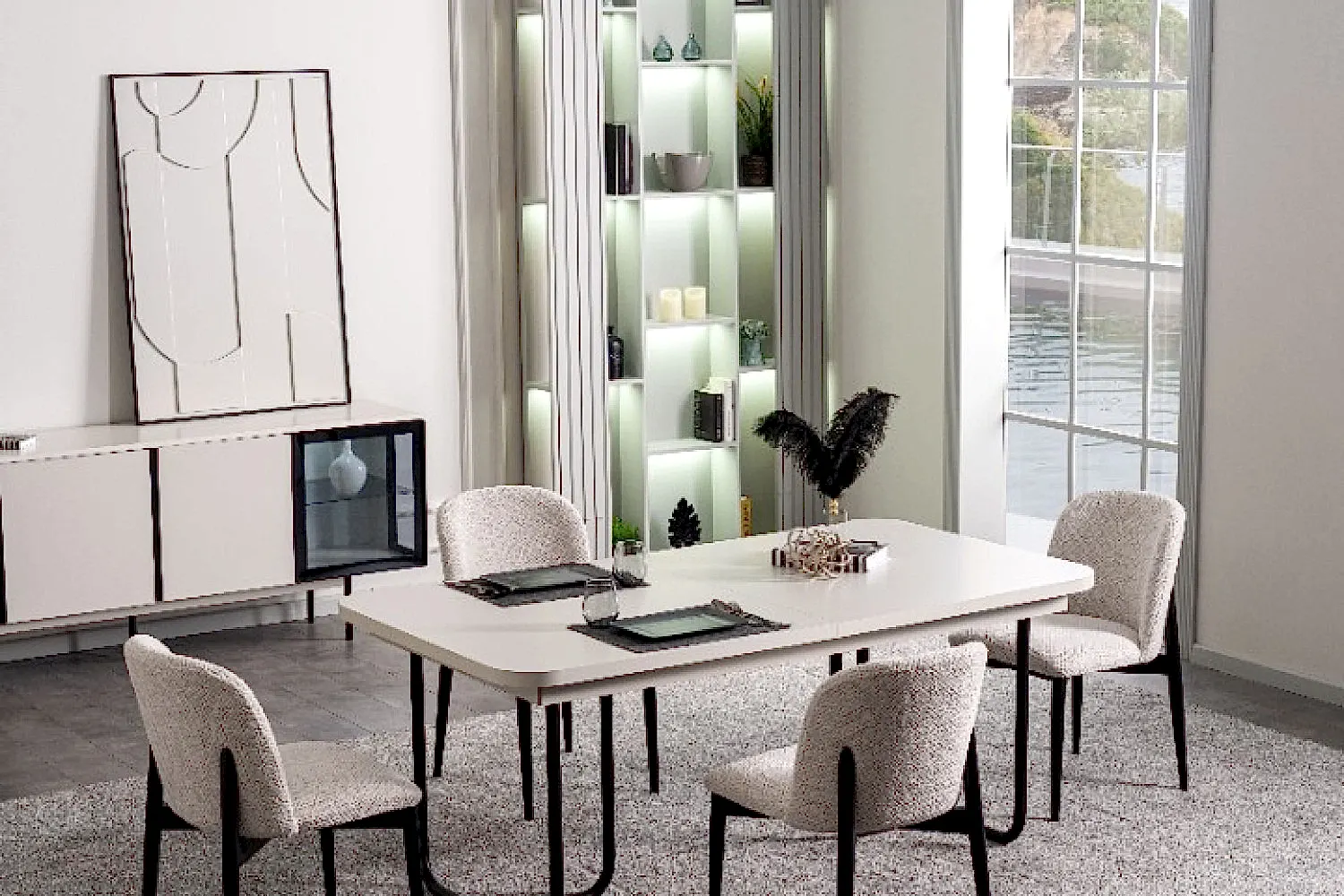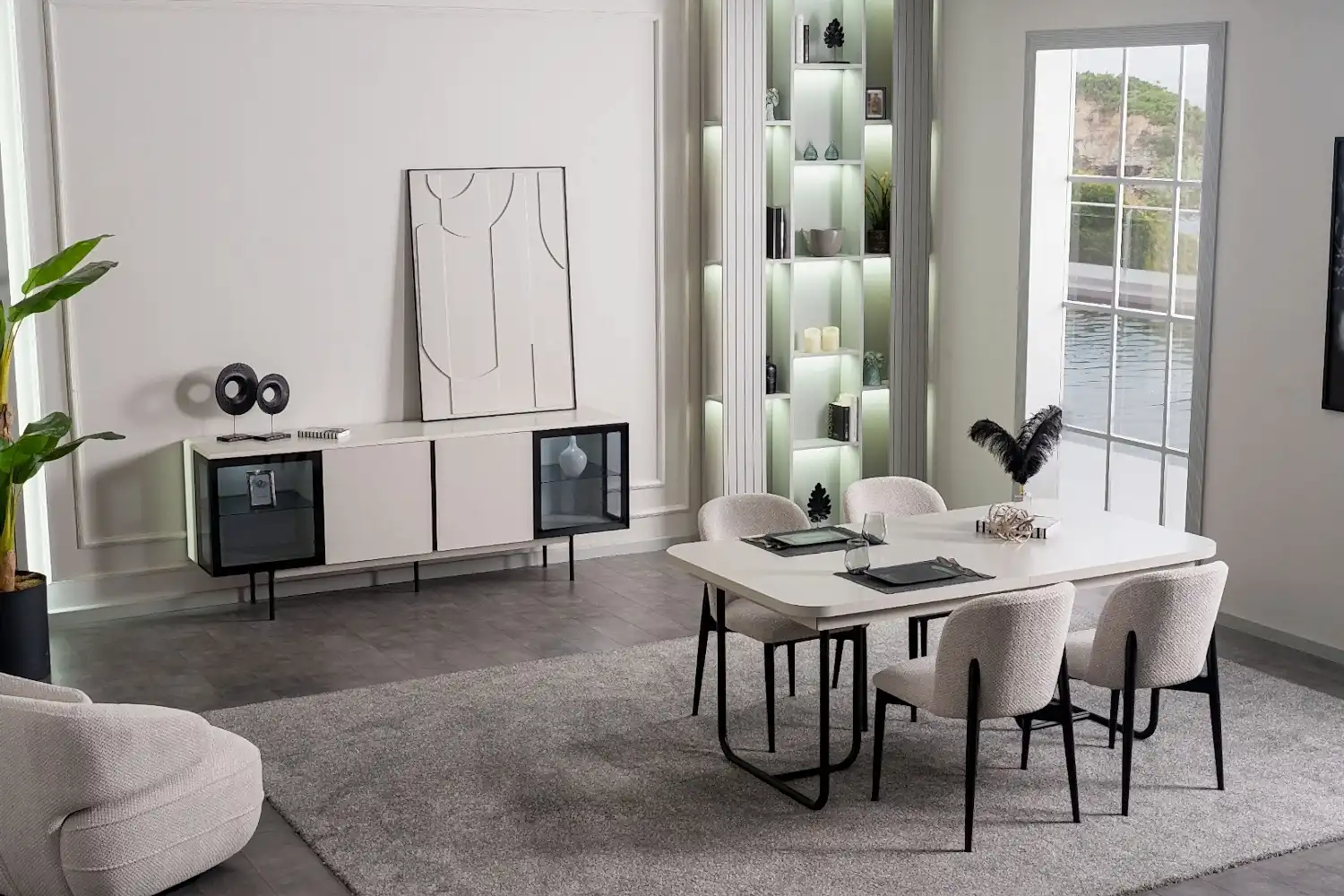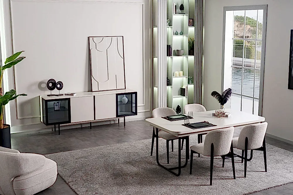 Yemek Odası Takımı: Aynalı Konsol – Masa ve 6 Sandalye